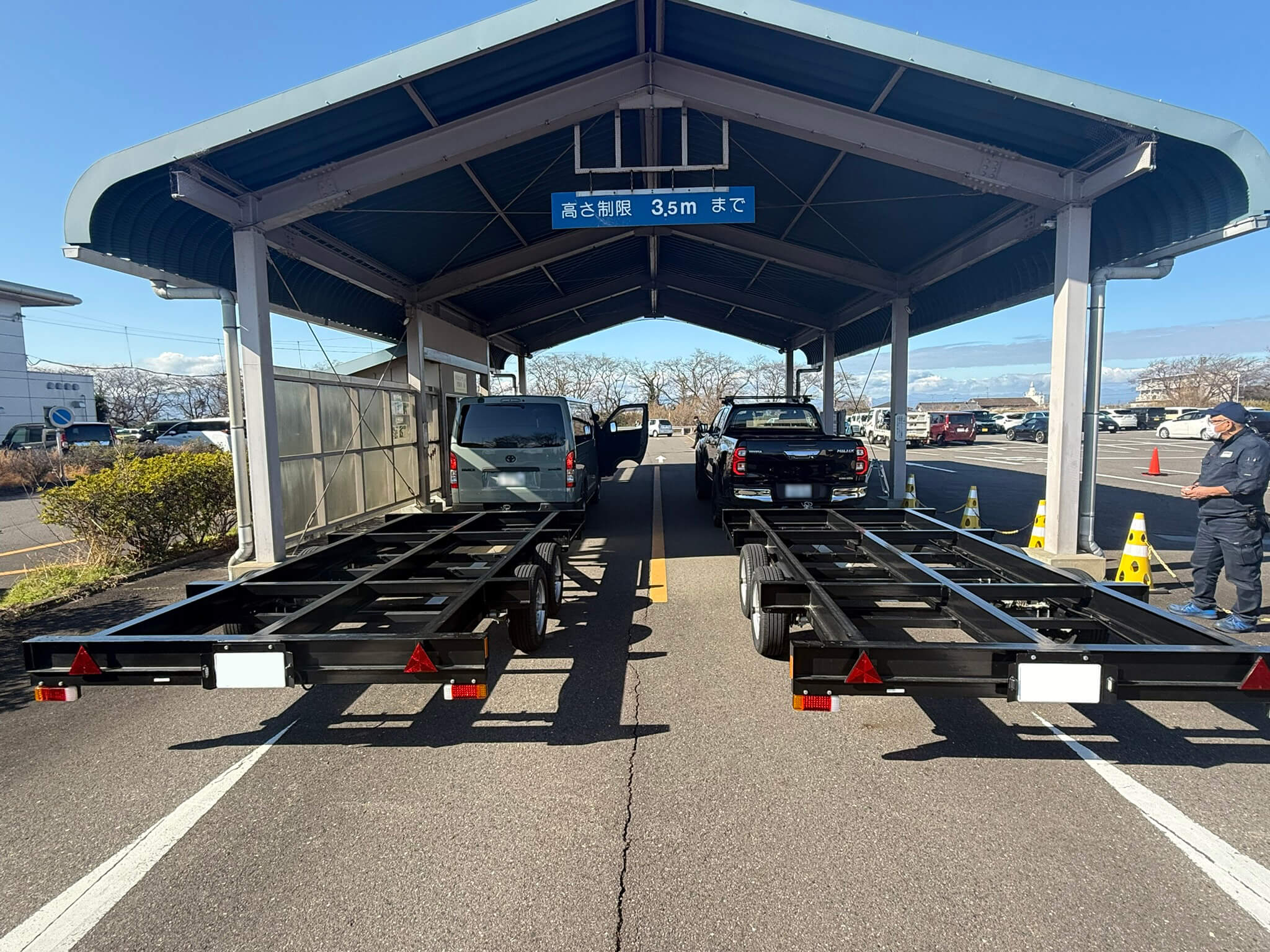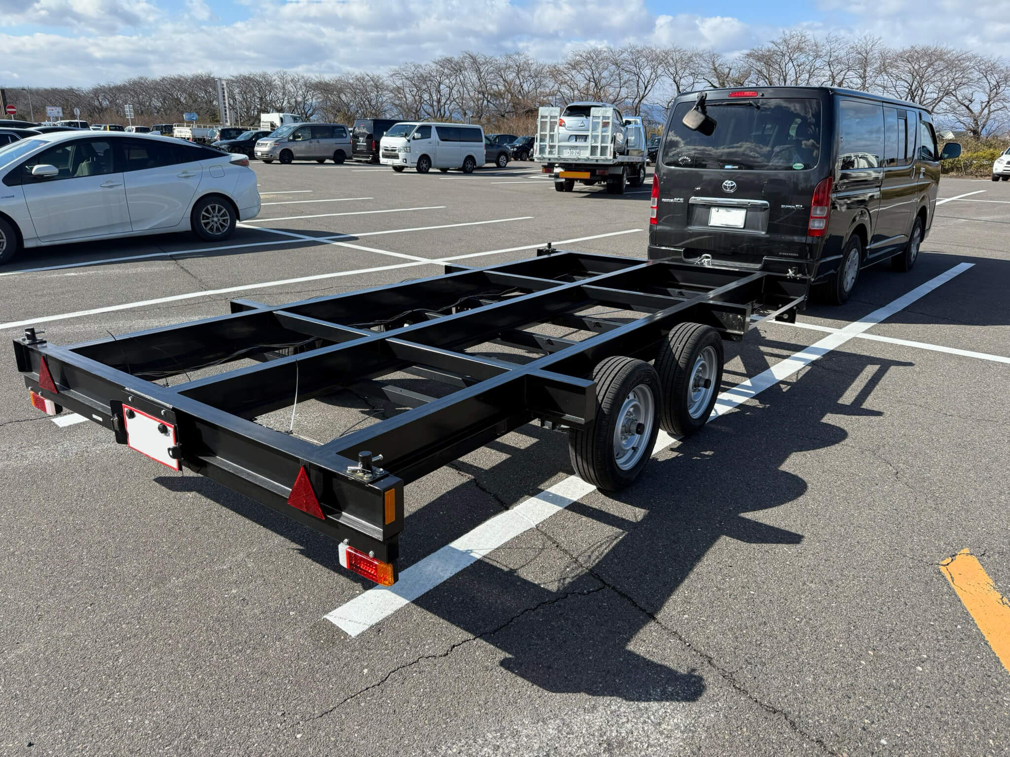 今回 長さ6m 幅2.2mの移動式トイレを載せるトレーラーを